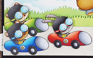 slider racetrack birthday card for my nephew, I had another idea for using the double-slider loop mechanism. Creating movement with the mechanism gets easier with practice, but I made it more challenging by using extra-wide panels, which required a wider loop. Here is the